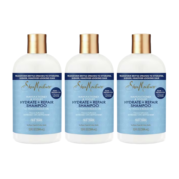 SheaMoisture Manuka Honey & Yogurt Hydrate Repair Shampoo gently cleanses while restoring moisture, strength, and shine to dry or damaged hair. Made with organic Shea Butter, Manuka Honey, Yogurt Extract, Mafura, and Baobab oils, it helps smooth rough cuticles, reduce split ends, and improve overall hair health. This sulfate-free formula is suitable for all hair types and is especially effective for brittle or damaged hair. For best results, use on wet hair, lather, rinse, and follow with conditioner. Ethically produced, sustainably sourced, and never tested on animals, it reflects SheaMoistures commitment to quality and community..